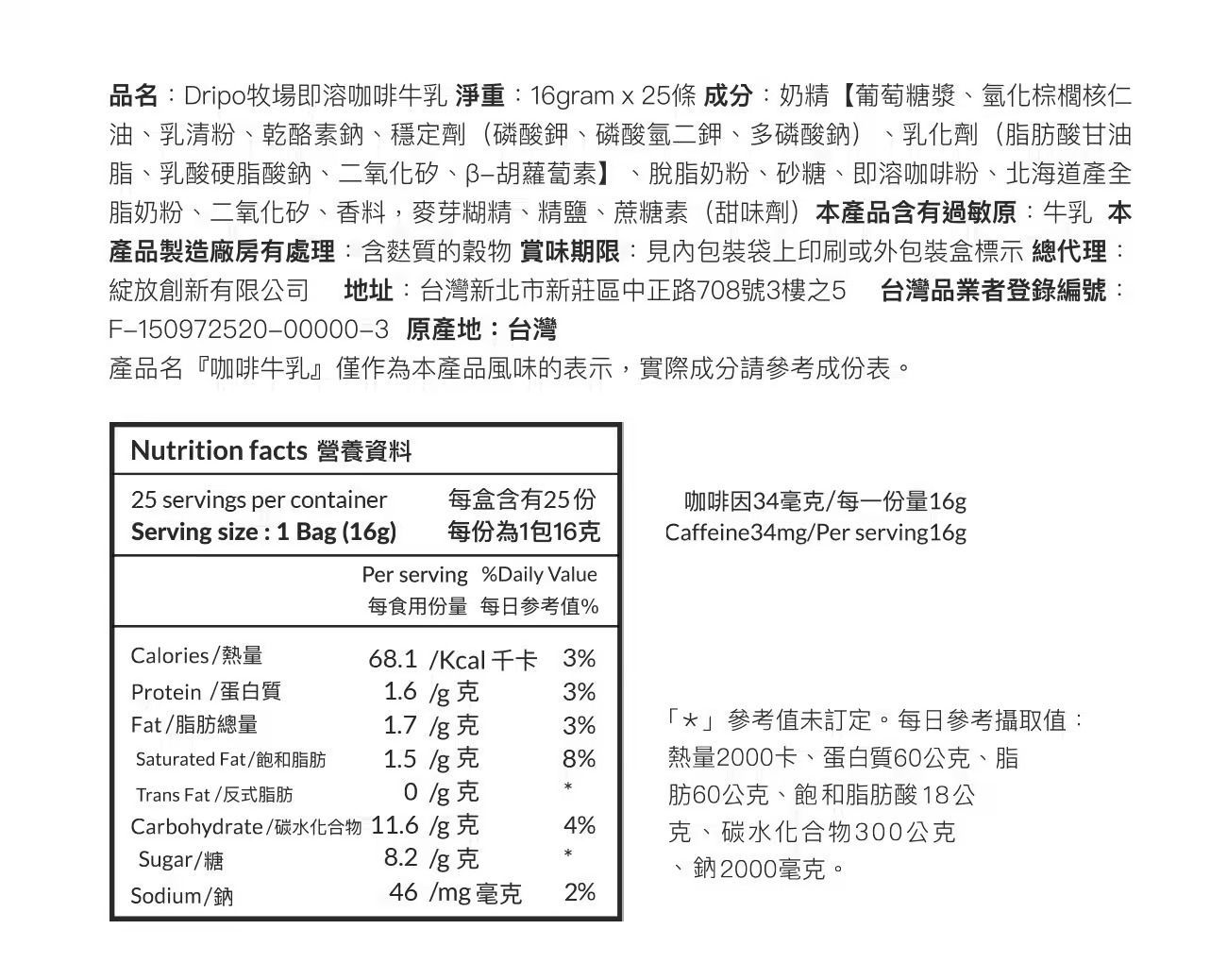 品名:DRIPO牧場咖啡牛乳即溶飲品