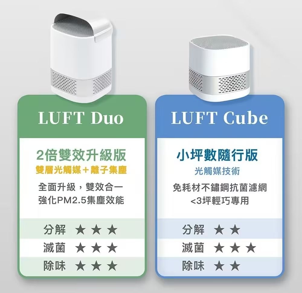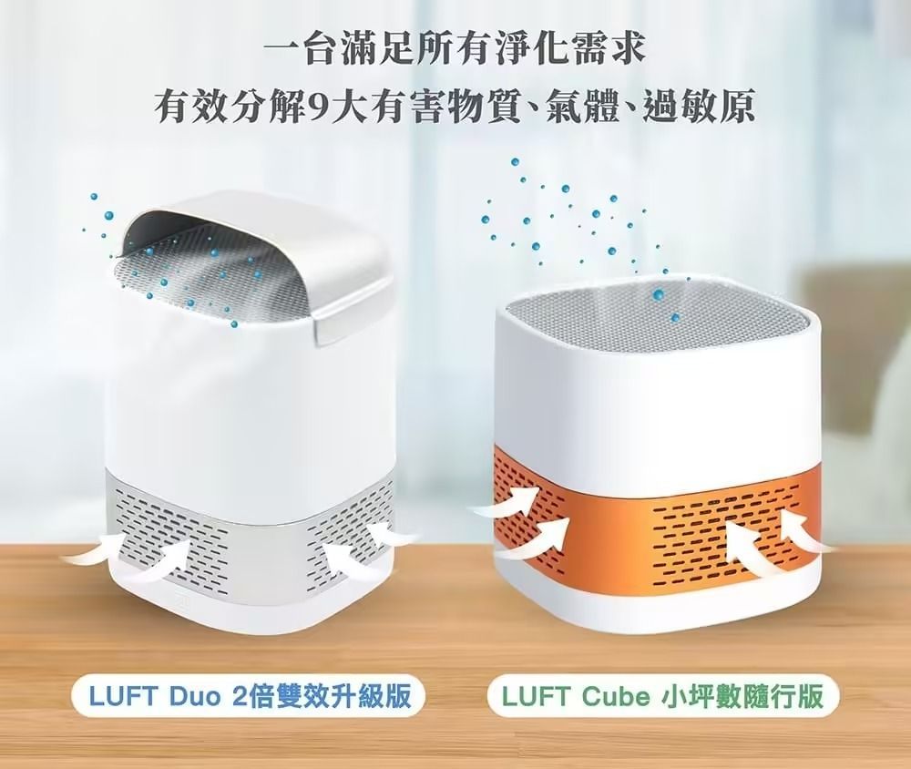 1.產品僅包含LUFT Cube光觸媒空氣清淨機、Type C轉USB電源線、透明導風帽。