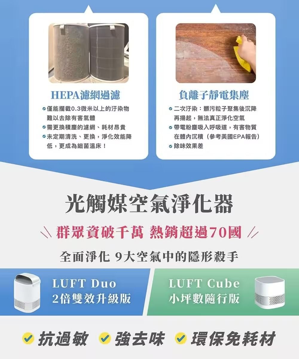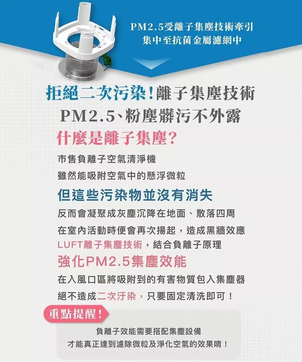 ●淨化效能超越HEPA濾網、負離子