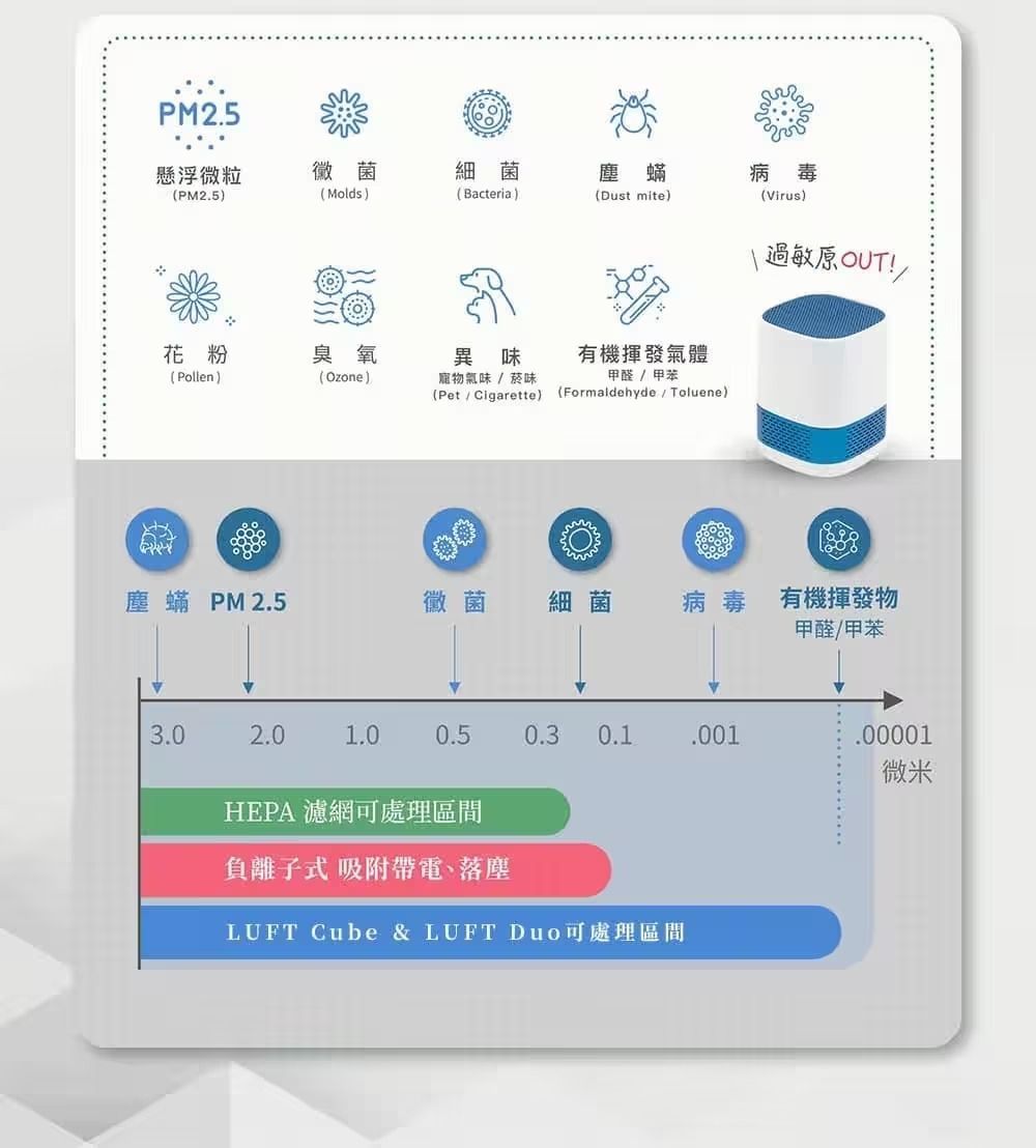 有效去除PM2.5、塵蟎、細菌、病毒、甲醛、煙味、寵物氣味等9大過敏原