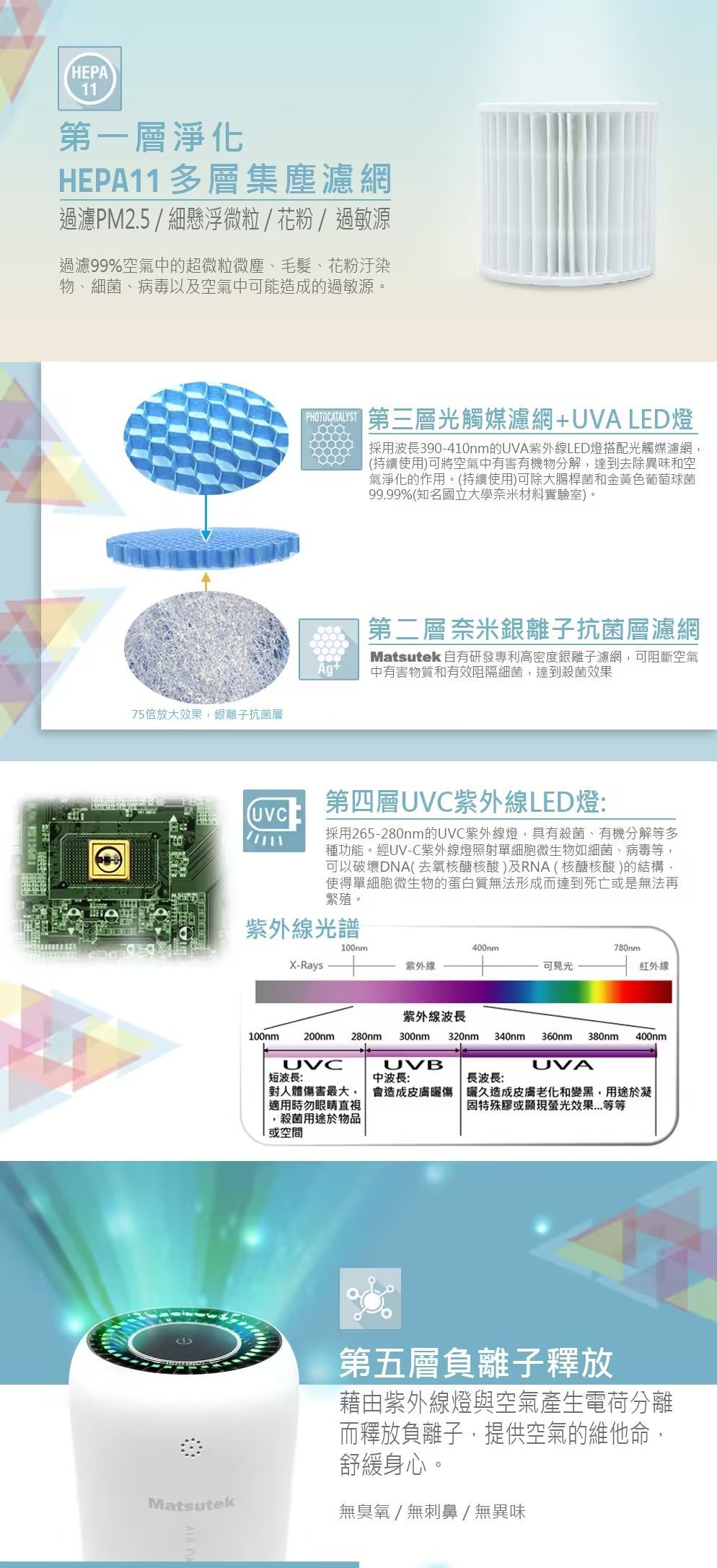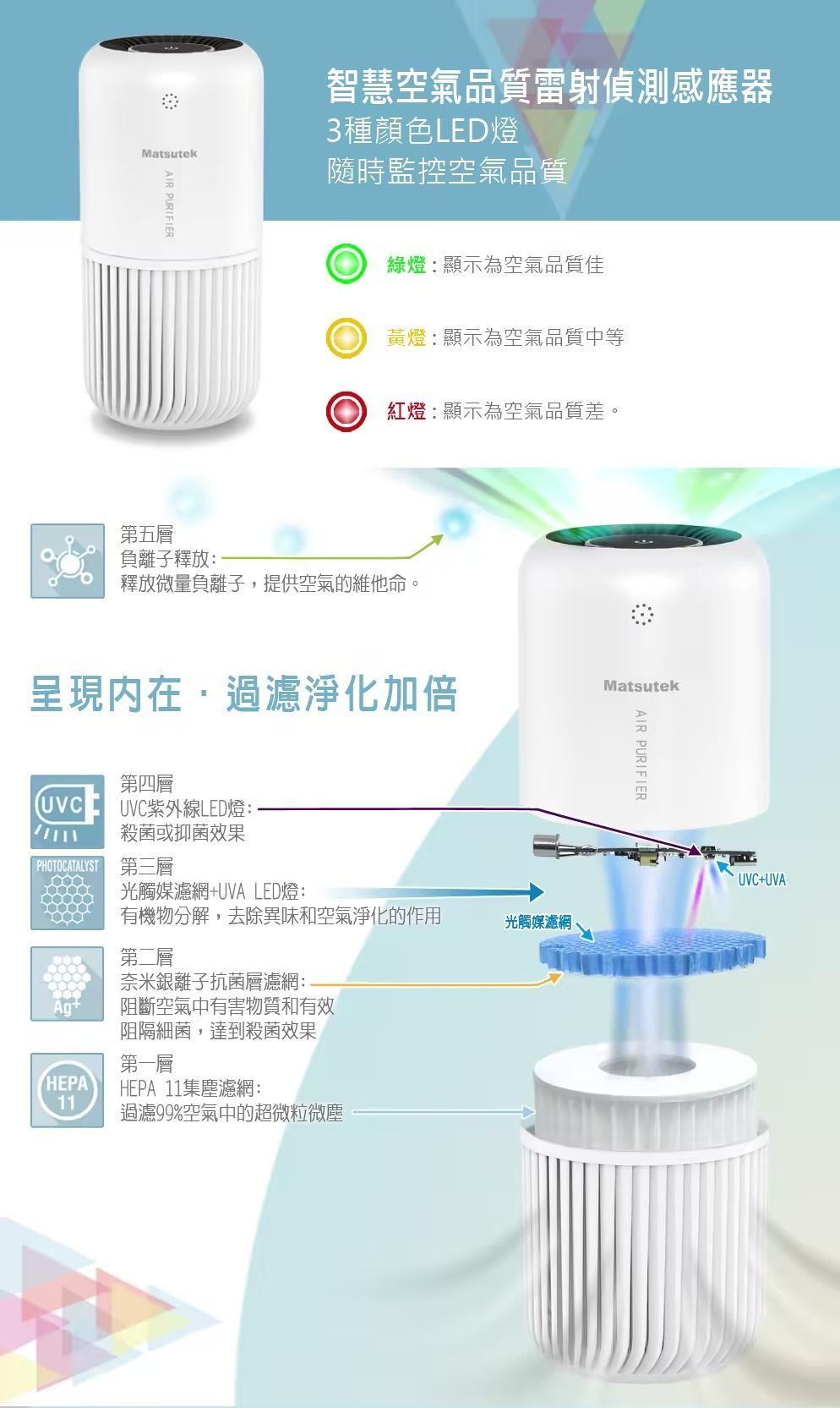 Matsutek∣雙紫外線殺菌空氣清淨機(銀離子抗菌/光觸媒/HEAP濾網)